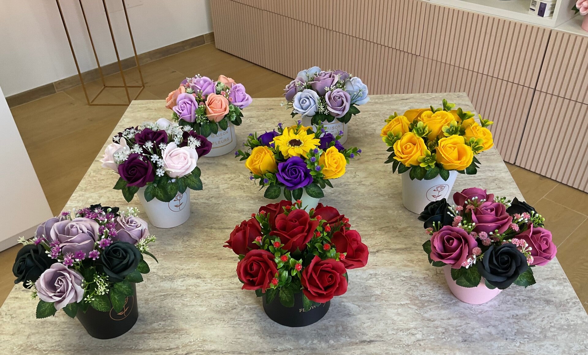 I nostri bouquet di fiori di sapone rappresentano un'alternativa elegante e duratura ai fiori freschi. Realizzati con saponi di alta qualità, offrono un'esperienza sensoriale unica grazie al loro profumo delicato e alla loro bellezza intramontabile. Ogni bouquet è creato con attenzione ai dettagli e può essere personalizzato in base alle preferenze del cliente, combinando colori e fragranze per un risultato davvero speciale.